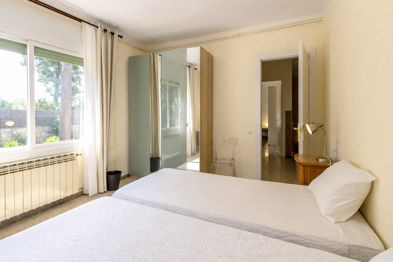 Las habitaciones también son de buen tamaño y están bien decoradas, con ropa de cama cómoda y mucha luz natural. Hay 3 camas dobles y 2 camas individuales, además de 3 baños en toda la propiedad. Las medidas de las camas son de 100x200 cm para la cama individual y de 130x200 cm para la cama de matrimonio.