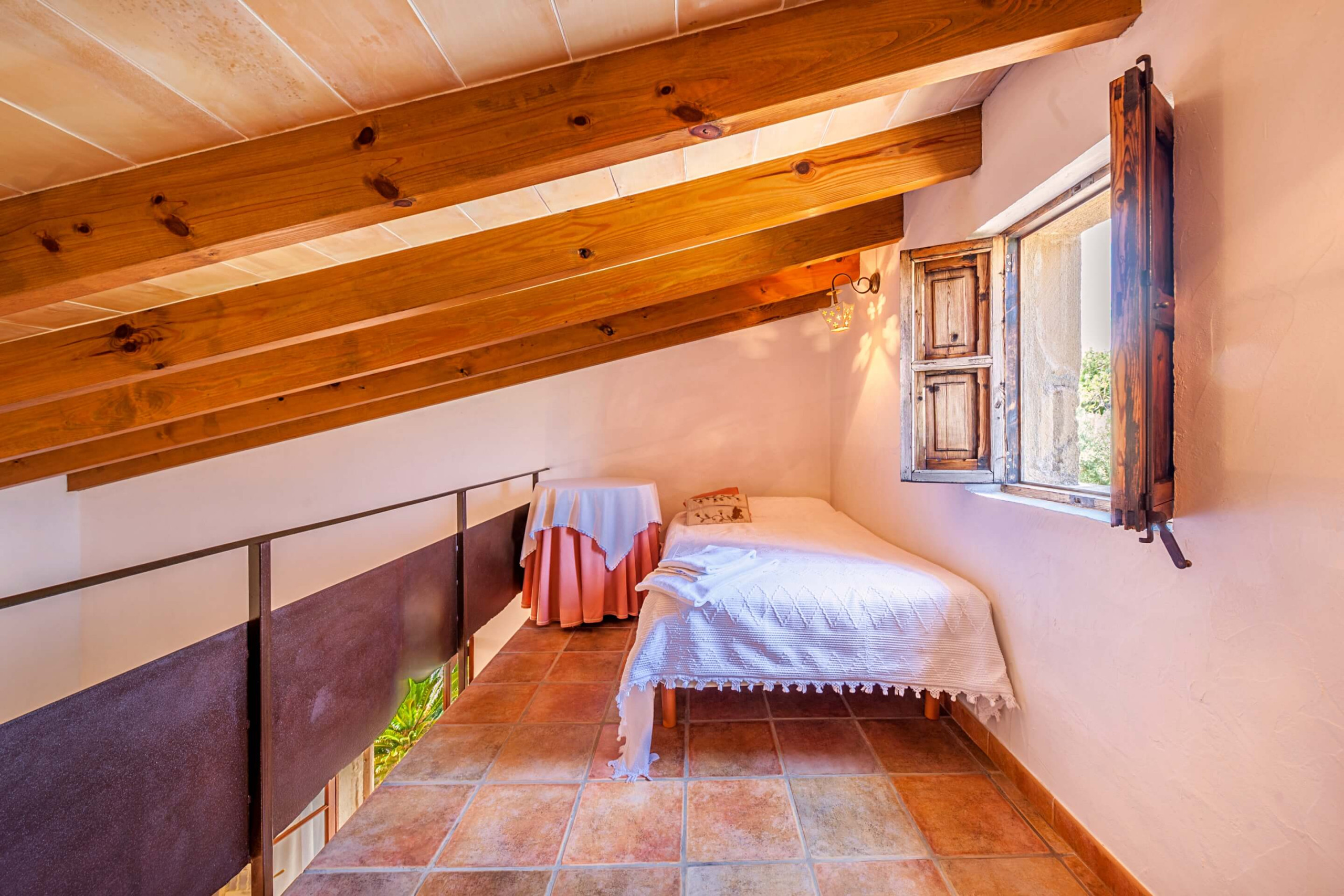 Villa Roqueta es una encantadora casa de campo con piscina privada, situada en una tranquila zona rural cerca de las playas de Alcudia y Puerto Pollensa. Ideal para 2 a 3 personas, ofrece paz, privacidad y comodidad, combinando tradición y modernidad. Rodeada de jardines y terrazas, invita a disfrutar del aire libre y del entorno natural. Un corto camino conduce a su entrada con puertas de madera antigua, que dan paso a un espacio abierto de salón, comedor y cocina completamente equipada, con electrodomésticos modernos y despensa independiente. En un anexo separado se encuentra la lavadora. Desde el salón se accede al baño con amplia ducha y al dormitorio doble decorado con estilo y equipado con armarios empotrados. En el exterior, destaca su terraza cubierta para comidas al aire libre y una zona de piscina rodeada de césped y patio mallorquín, perfecta para relajarse y disfrutar del clima y las vistas. Villa Roqueta es el refugio ideal para una escapada romántica o unas vacaciones tranquilas en familia, con aire acondicionado, ambiente acogedor y ubicación privilegiada en el corazón de Mallorca.