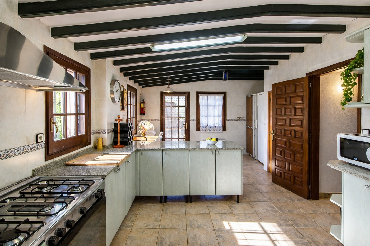 La primera planta, se encuentra una cocina amplia y luminosa totalmente equipada con nevera, congelador, microondas, horno/estufa, tostadora, hervidor de agua y lavavajillas donde usted y sus seres queridos pueden disfrutar de la cocina de comidas auténticas o donde tienen la opción de que uno de nuestros chefs con experiencia deleite su paladar con la cocina tradicional española. La planta baja también cuenta con dos acogedores dormitorios, el primero tiene 3 camas individuales y el segundo combina 1 cama doble y otra individual.