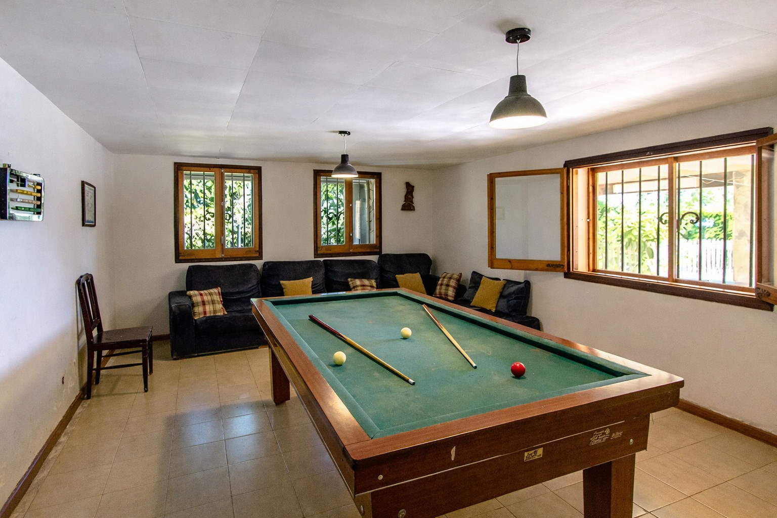 En la planta sótano hay una sala de juegos con una mesa de billar, un baño y una sala de lavandería con lavadora y secadora.