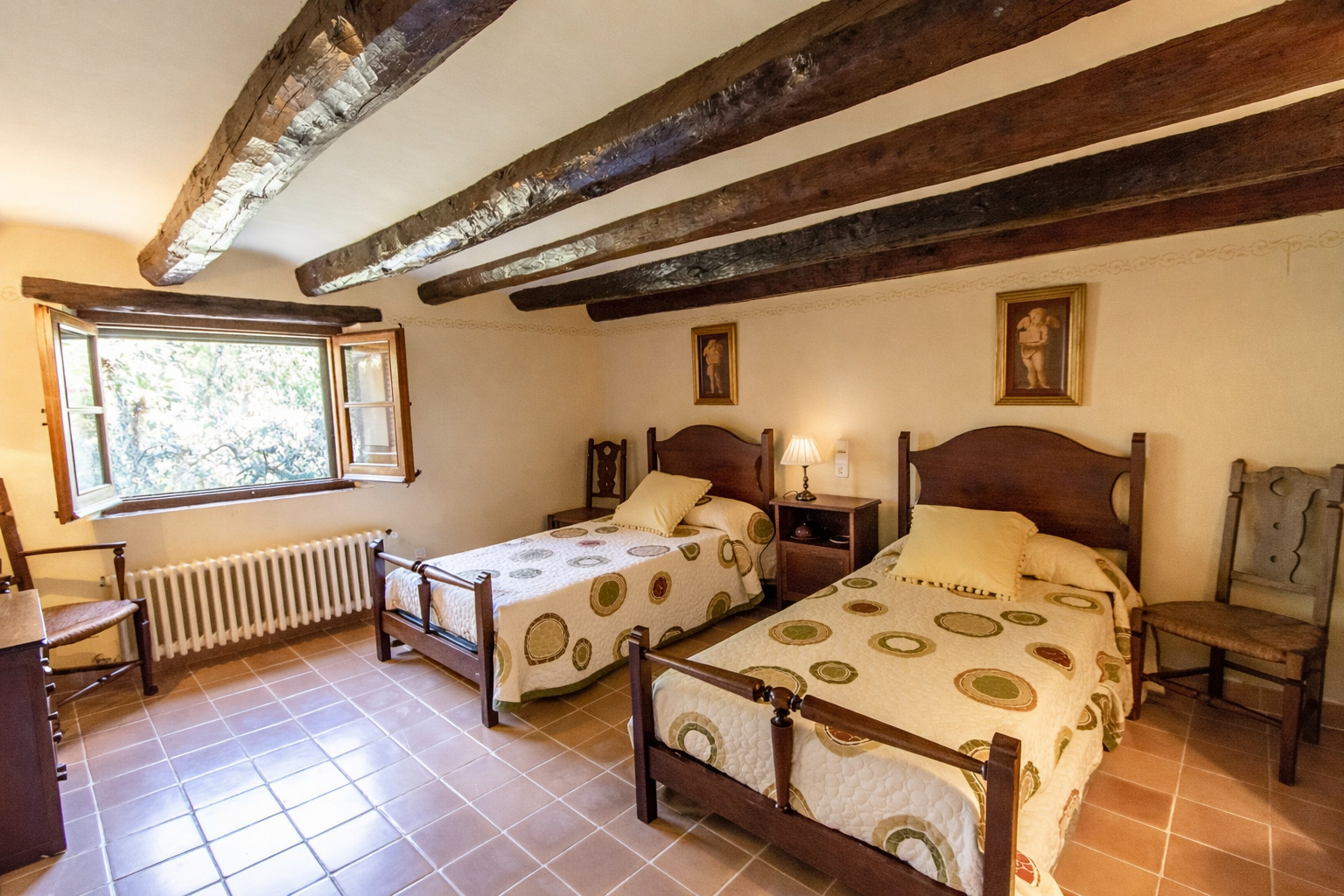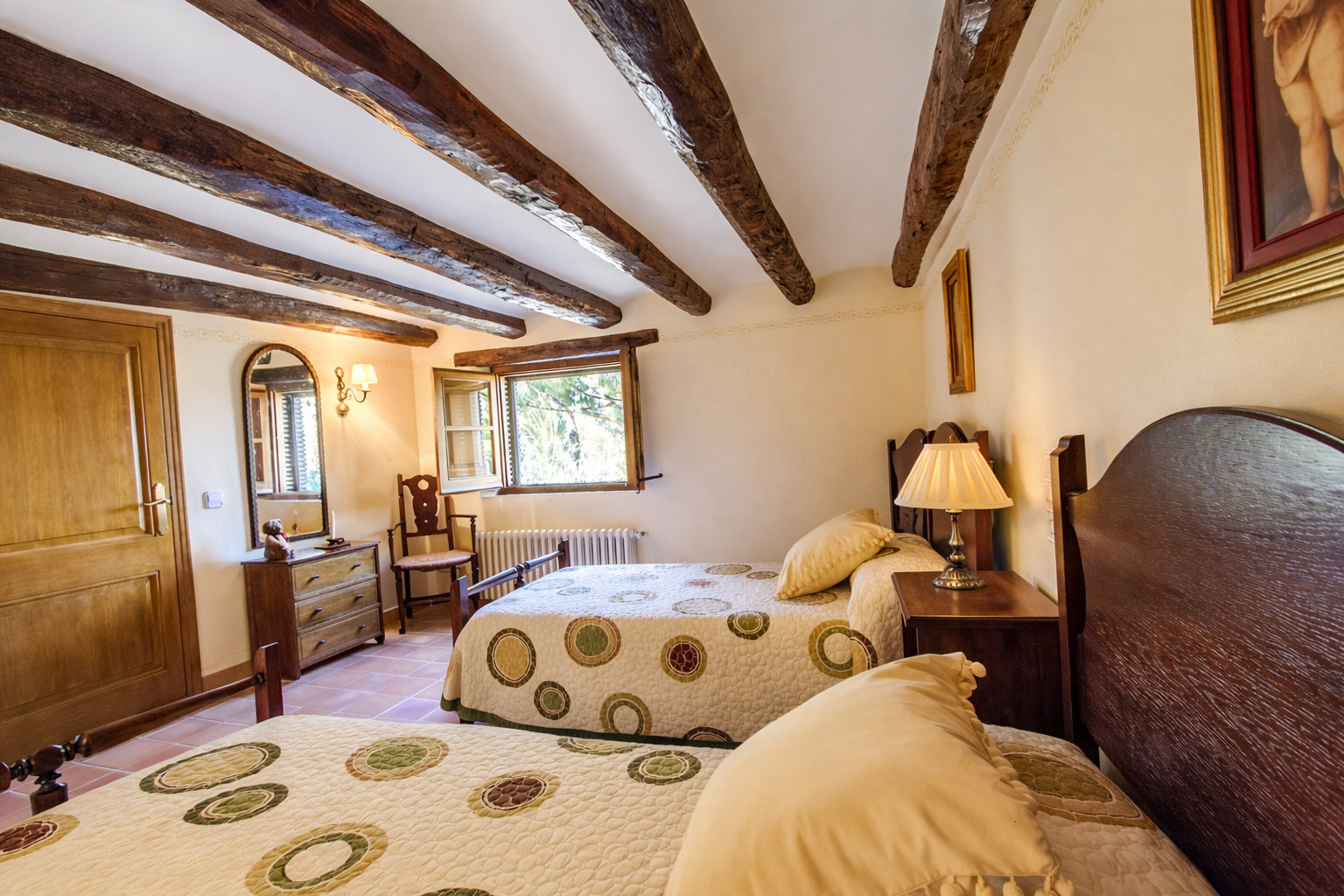Primera planta: 3 habitaciones dobles y 2 baños.