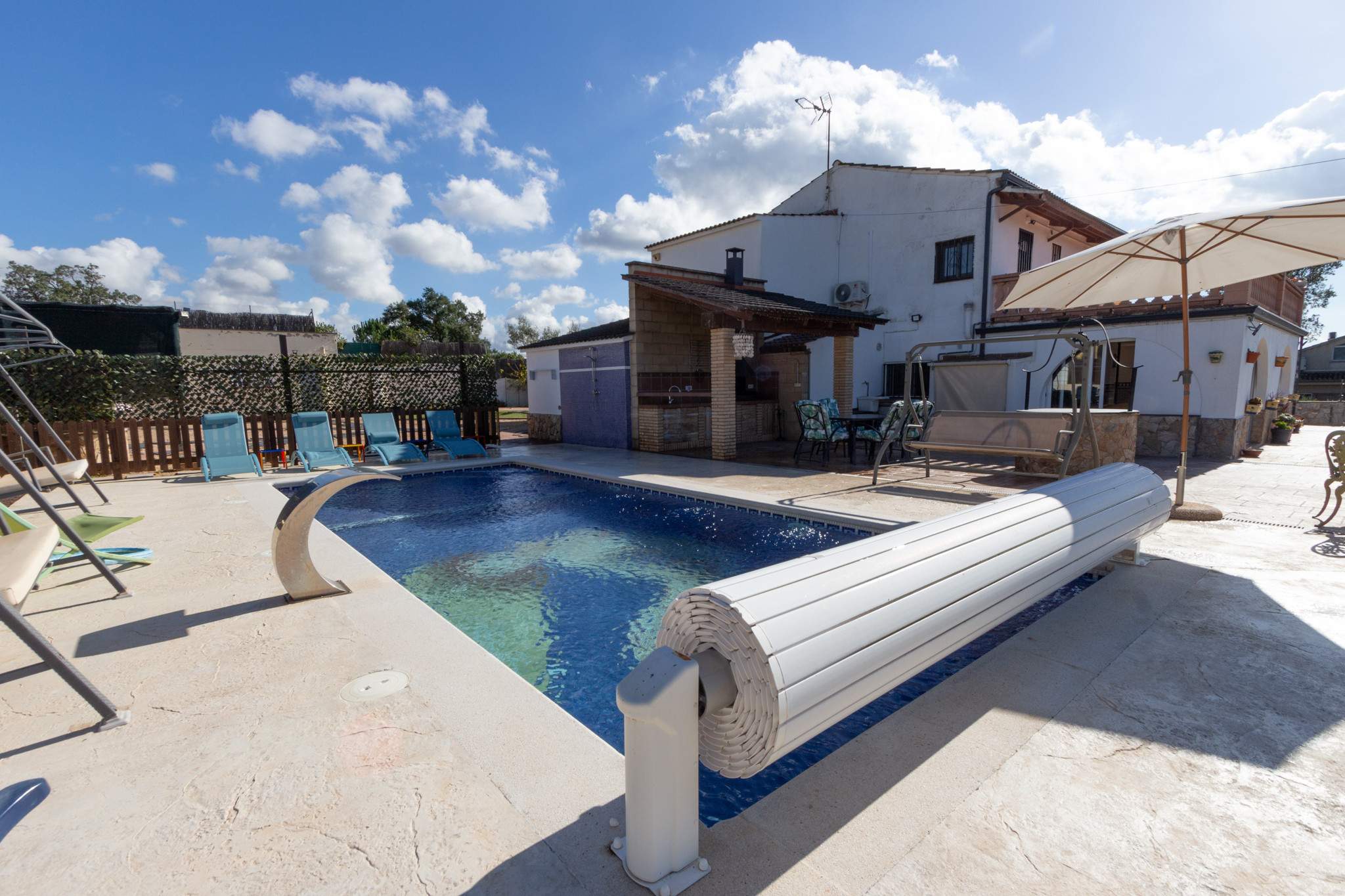 En el exterior encontramos un amplio jardín privado con una casita infantil de juguete, una zona cubierta de almuerzo, barbacoa de carbón, tumbonas, sombrilla... y una maravillosa piscina privada de 4 metros de ancho y 7 de largo, con una profundidad máxima de 1.50 metros!