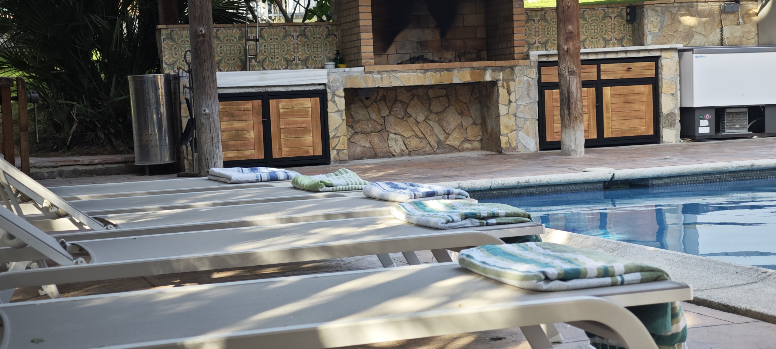 Nous avons séjourné a 19 en famille dans cette magnifique villa .elle est très bien équipée, elle est immense . Le parc est magnifique et bien entretenu. A 18 min de Lloret de mar en voiture. Et a 5 min du premier supermarché. En pleine nature, il y même des perroquets et pigeons dans la propriété.