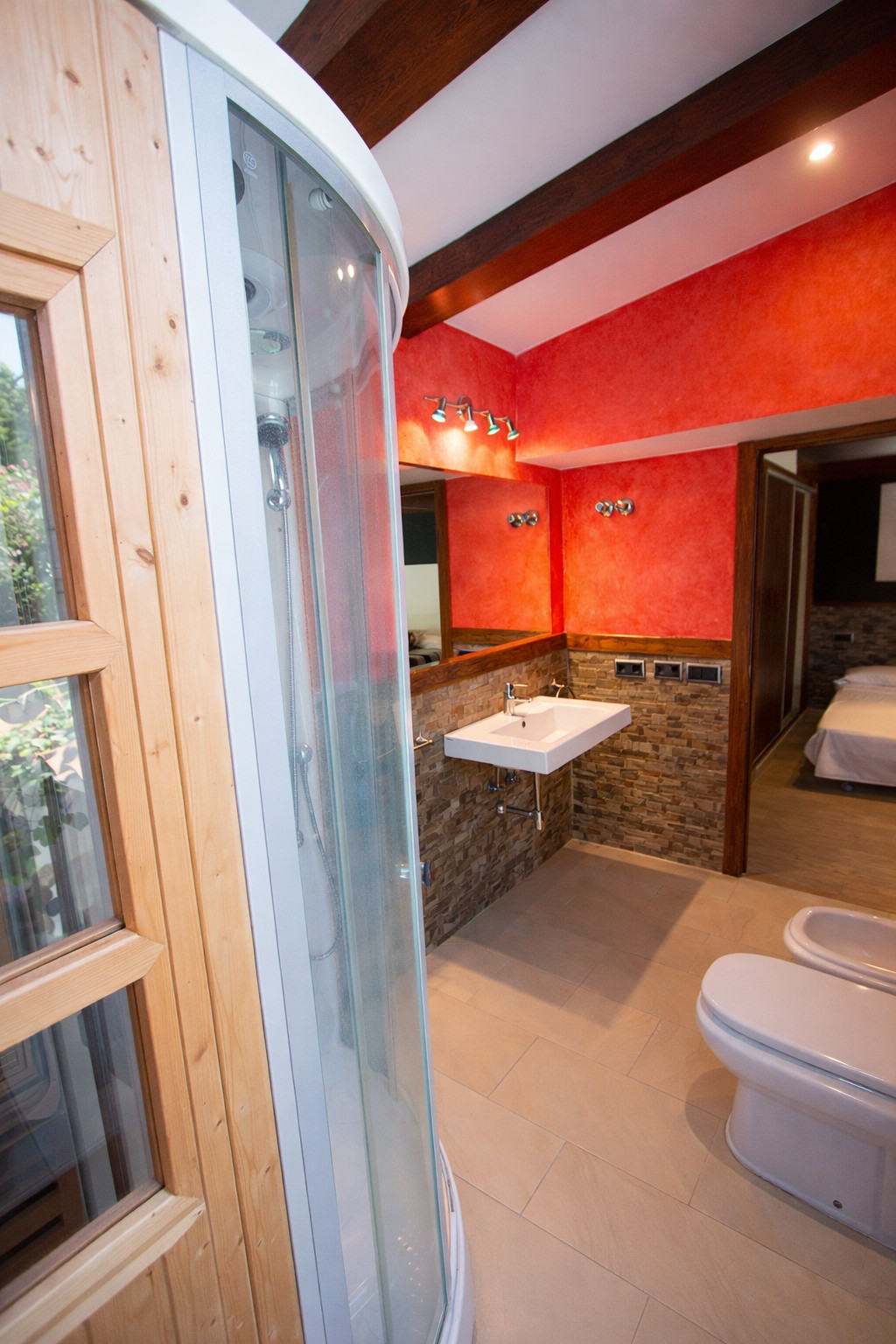 Suite 1 (extérieure) : lit king + canapé-lit double avec salle de bains