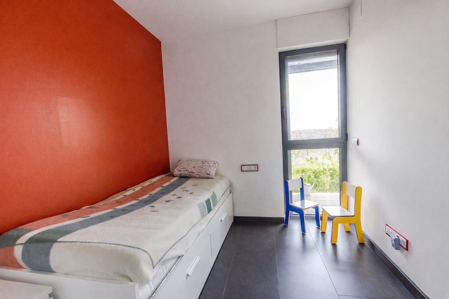 (2) one small bedroom with single bed/trundle bed for two children