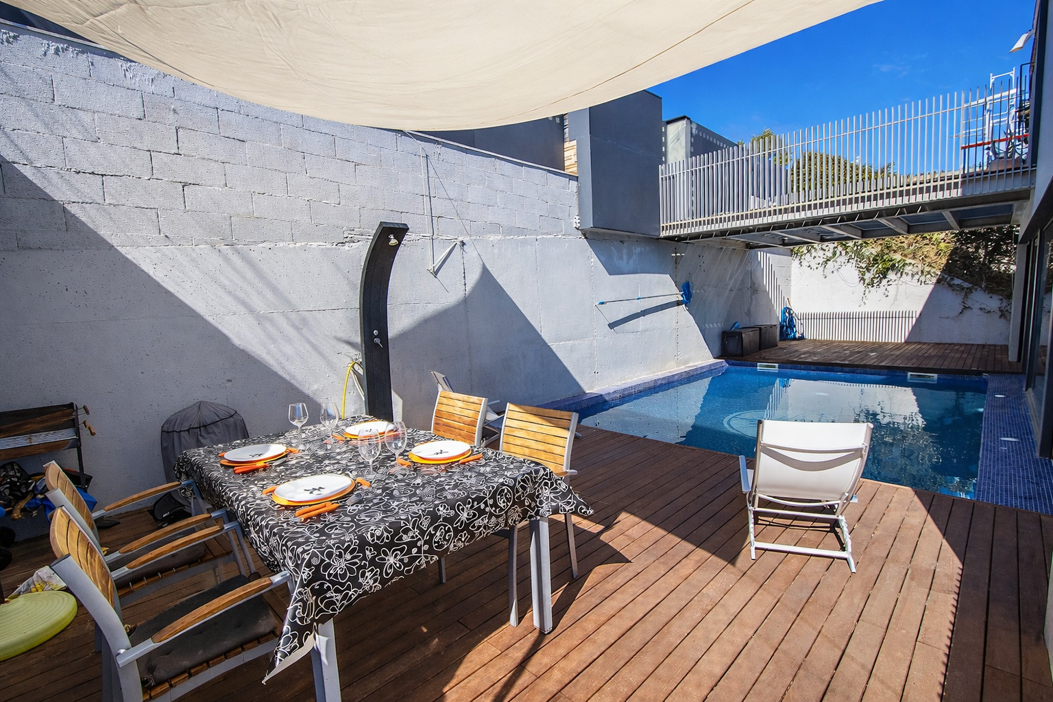 Holiday in style in this three-story Catalunya Casas villa with a private pool (with underwater views from the bathrooms!) that measures 4.5m x 7m and has a depth of 1,5m, as well as an outdoor dining area with mountain views. Take a refreshing swim followed by a home-cooked meal prepared on the barbecue and enjoyed around your al-fresco dining table as the Spanish sun sets.