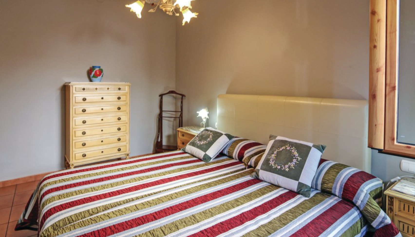 Inside this villa, there is a sunny dining room and kitchen, both with access to the terrace. Enjoy your favorite movies with a movie projector and its screen. The kitchen is equipped with all the necessities and utensils that you could find in your home. There is also a WC on the ground floor and a full bathroom on the first floor. The four rooms are distributed as follows: Two double beds (4 guests) One double bed (2 guests) One double bed (2 guests) One single bed (1 guest). Sizes of the beds are 100x200 cm for single bed and 130x200 cm for double bed.