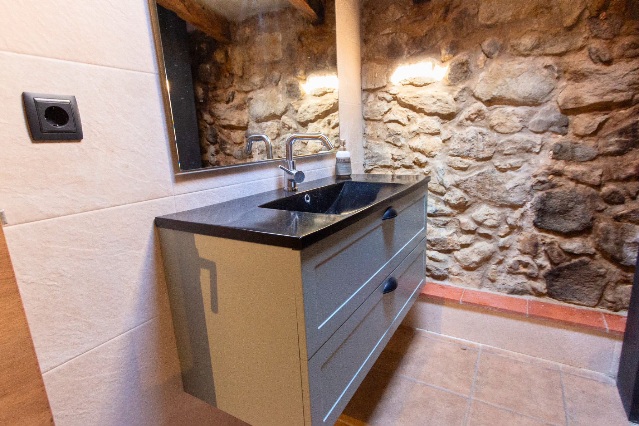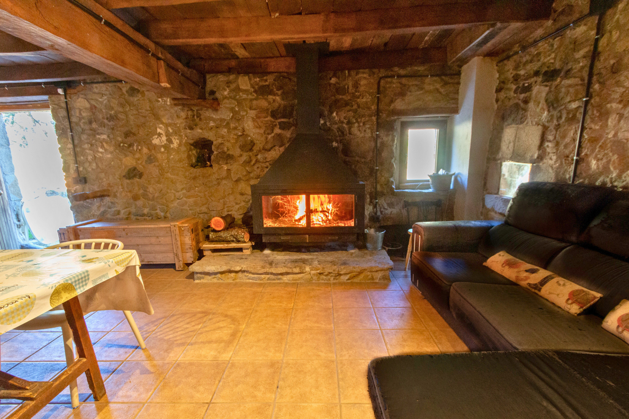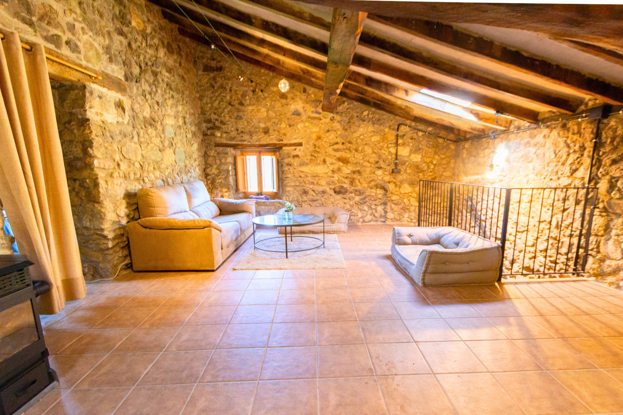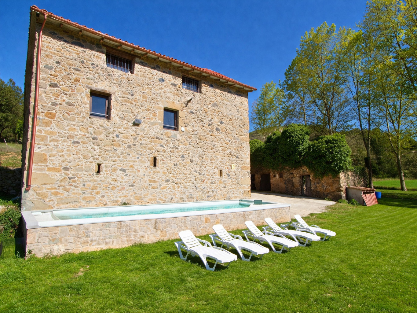 Located in the heart of La Garrotxa, this former farmhouse has been carefully renovated, preserving its rustic character while incorporating all modern comforts. Its spacious interiors invite you to relax: a cozy living-dining room with fireplace, a fully equipped kitchen, and two complete bathrooms. The bedrooms are spacious and versatile, designed to comfortably accommodate large groups.
